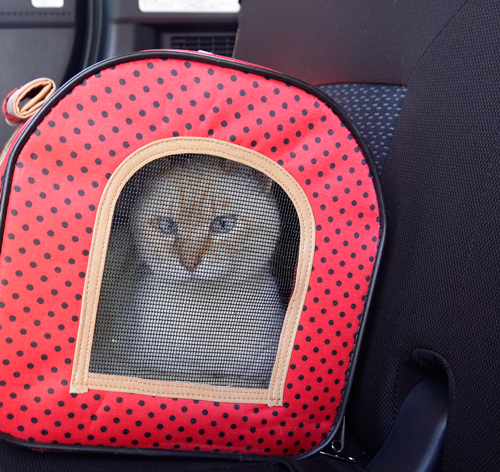 ネコは、外出せず食事もしない。ネコベッドで終日動かず寝ている。心配して、かかりつけ動物病院へ。肛門に体温計を挿入、39.3℃と発熱。喉も腫れている、聴診器をあて、風邪と診断。注射、投薬し帰宅