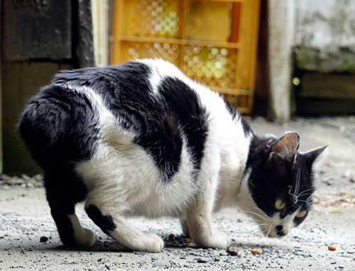 昨日紹介の白黒ブチネコ君 こちらで、来週避妊手術をと思っていたら、ボランティアさん来訪 ボランティアとの話の合間に出て来てニャーニャー鳴いている 避妊して、譲渡会で進んでいます
