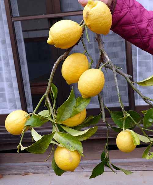 家レモンの樹 鈴なりです。高さ3m程に成長し、上の実は脚立がないと採れない。