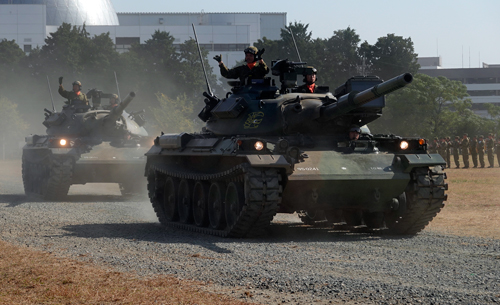 式典、模擬演習の目玉は、74式戦車の空砲発射。天地に響き渡る音。子どもたち耳を押さえながら見入っていました。ウクライナの戦争は映像で見ているが、音の大きさは感じられない。でも ライブは凄い。