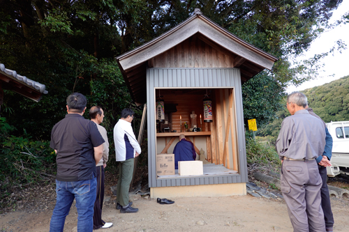 周辺は田と大きな椎の木に覆われていて、地域の人 散歩途中に手を合わせています。