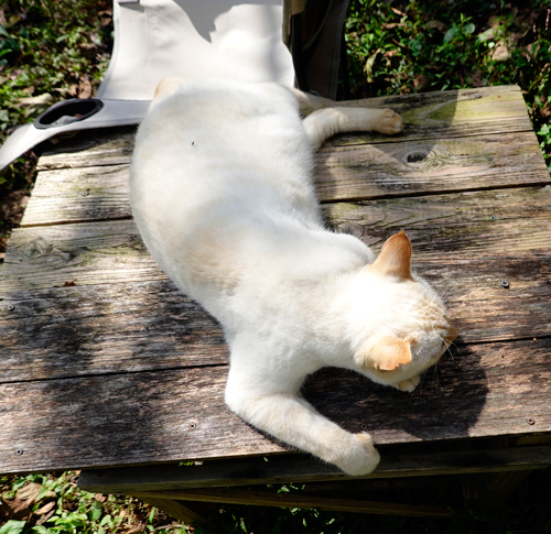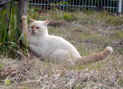 散歩に出て、爪とぎ写真です。何処でも、日々爪とぎです。