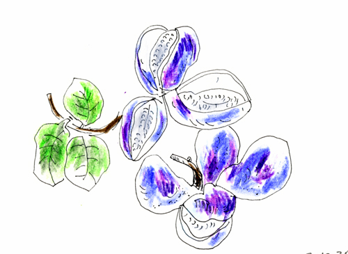子どものころから親しんだ味。山に行くと、つる性の木に、アケビがぶら下がっていて、採って食べた。何とも形容しがたい味。皮の下に、白い実と種が種が混在していた、淡い甘みと、多くの種。食べると言うより、口の中で転がし、種をペットだす。
