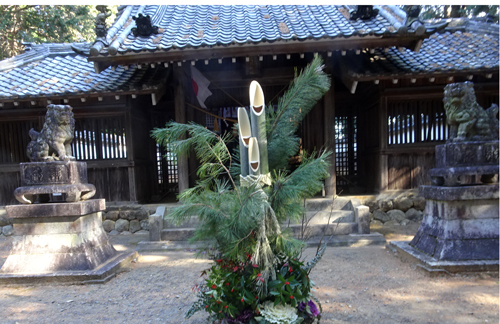 そして、氏神様にお詣り。門松の出来具合を見つつの参拝です。