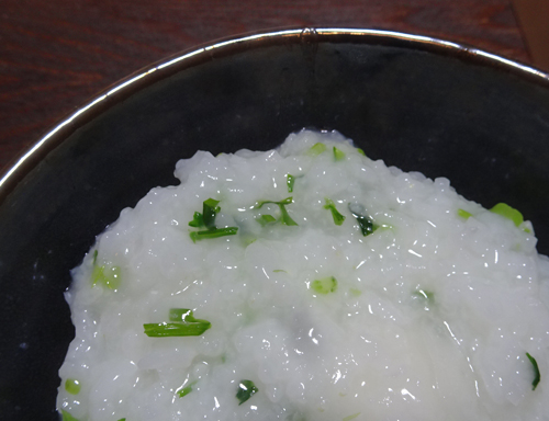 毎年我が家は、スズシロ(大根)を畑で抜いてきた、一草がゆ。正月の胃疲れにやさしい。仏前にお備えしたあとに、食事。