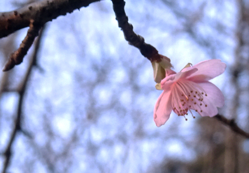右下から時計回りに、シダレザクラ、カシ、クルミ、ソメイヨシノ、カキ 区別がつきにくいが、新緑になれば、それぞれ芽吹き楽しみです。