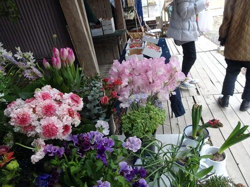 花屋さんは、春の花 スイートピーや、スミレ。