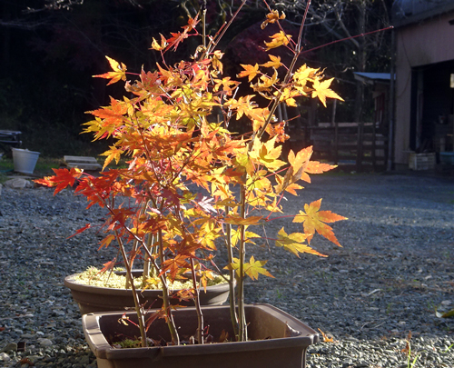 豊橋のもみじ寺として有名な、普門寺に参拝時、苔の中の、マッチ棒程の実生の幼木を数本頂戴し鉢植えにして育てています。