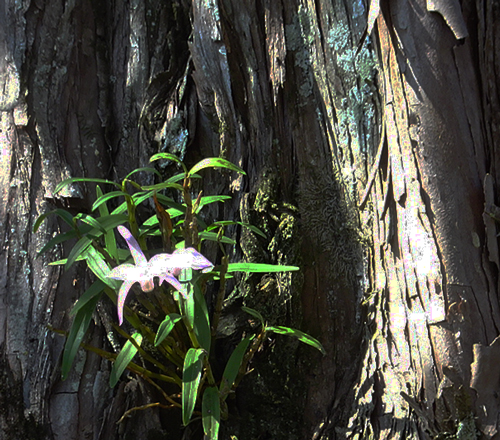 数日前見たら、一部に花が咲いている。ランの開花を見つつ、温暖化の影響とも感じます。動植物の反応 温度計数値でなく自然センサーです。自然状況変わって来ています。ラン 今後も見届けます。