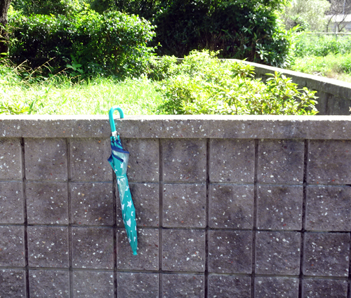 傘を持ってきたが、雨が降ってなかったので忘れたようです。