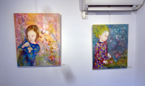 画家は、現代美術協会会員です。作品は、伊藤カラーで優しい。お孫さんモチーフに描かれた絵 伊藤家の成長が感じられます。