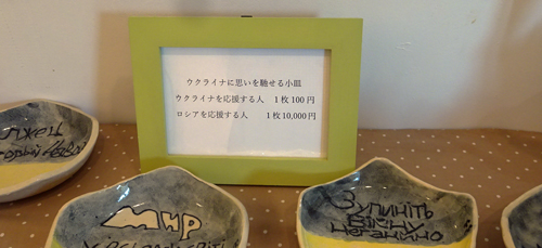 小皿のプライスは、ウクライナを応援する人 1枚100円 ロシアを応援する人は、