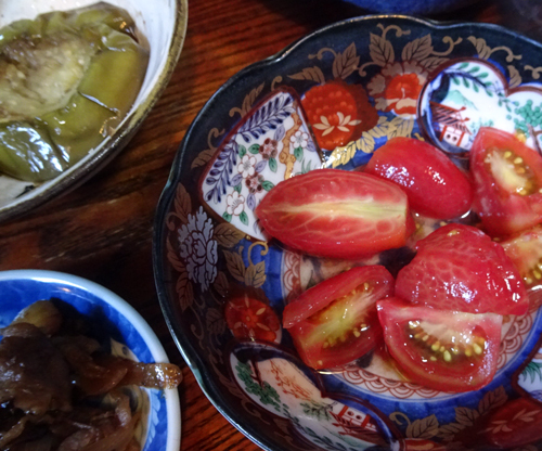 朝食には、冷やしたミニトマト 彩りでなくお皿にたっぷり。