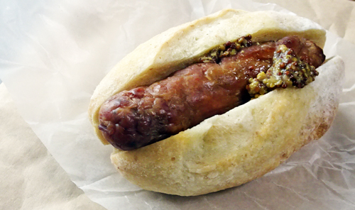 ホットドッグ 春色ではないが、ゴーバルのソーセージ。パンとソーセージ もっちり&ジューシー。