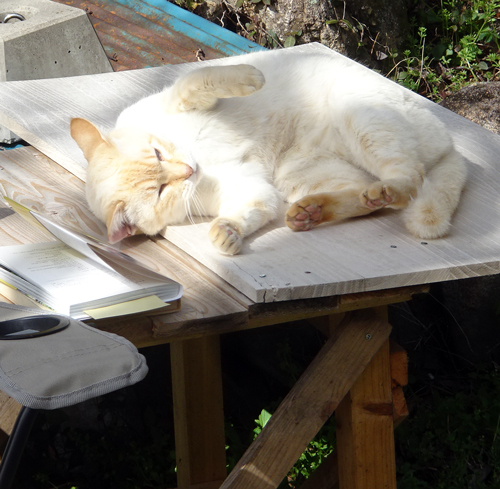 ノッコを横に読書。本は、「まる ありがとう」 著 養老孟司さんの愛猫まるとの、写真と文書が、ハーフハーフの書籍。NHK番組で、ほぼほぼ見ているネコさんですので、愛着あり。