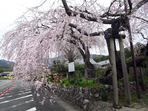 家から徒歩5分 県指定文化財 宝円寺のシダレ桜です。樹齢400年余の老木で、今 満開。花見の人多数。