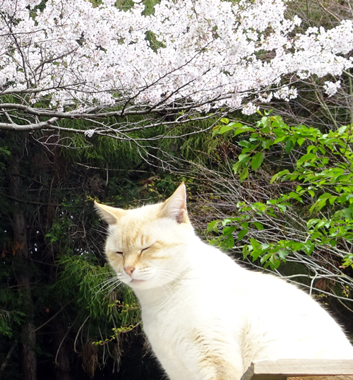 幸いにも、サクラ咲き、晴れた日でした。ありがたい。